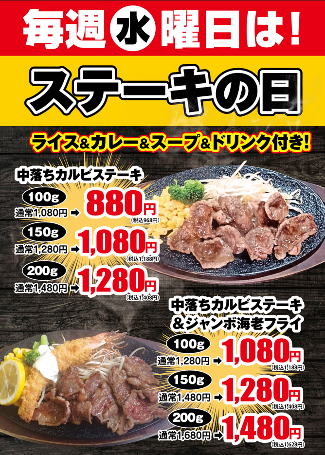 毎週水曜日はステーキがお得!!